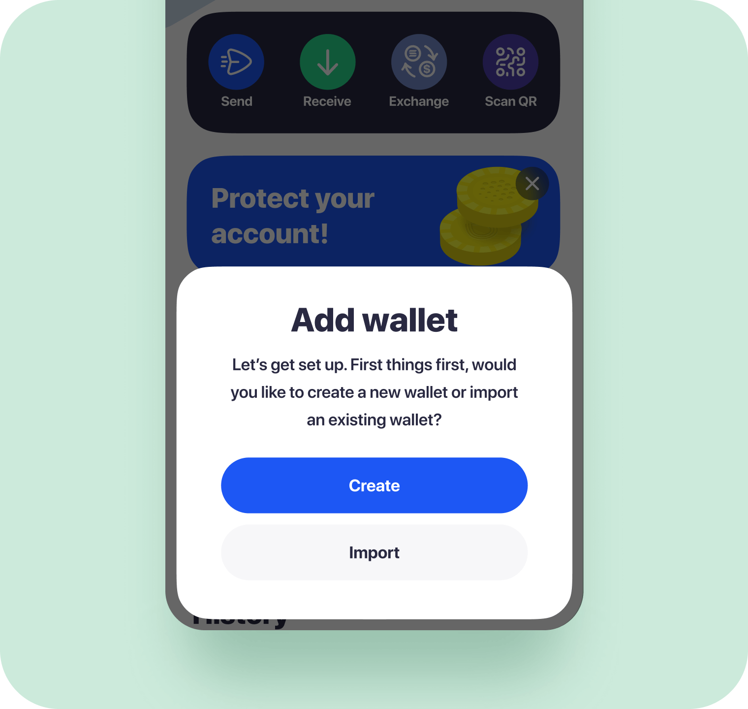 This is the main screen of the Oxygen wallet. It shows you the assets you hold and allows you to send funds, receive funds, exchange one asset for another for a given F/X rates and a QR functionality for importing a wallet or sending/receiving funds.